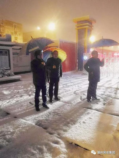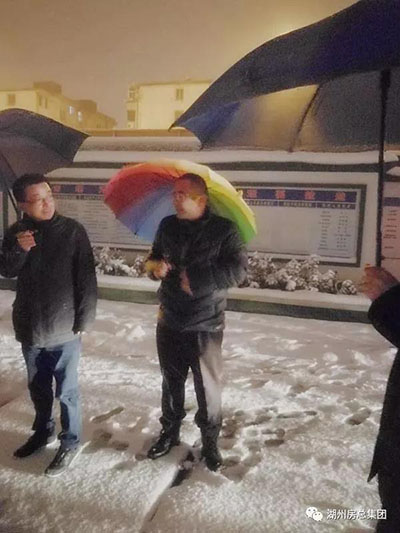 1月25日晚,公司黨委書記、董事長費子明、副總經理朱春根冒雪帶隊視察公司辦公大樓及各項目現(xiàn)場抗雪防凍值班工作。