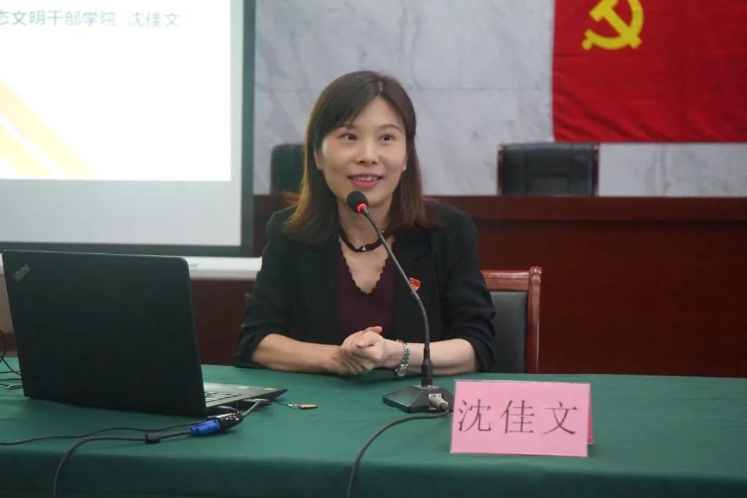 會上,沈教授以《學習總書記浙江湖州講話精神,推動‘兩山’實踐再出發》為題,結合自身學習體會,從“審慎研判當前形勢變化”“主動引領發展優勢進化”“不失時機推動運勢演化”三個方面深刻分析了當前的形勢變化,深入淺出的解讀了習近平總書記在浙江湖州的重要講話精神,并對推動“兩山”實踐再出發提出獨到的見解,為黨員干部深刻領會習總書記浙江湖州講話精神、秉承總書記新期望,講明了關鍵、指明了方向。