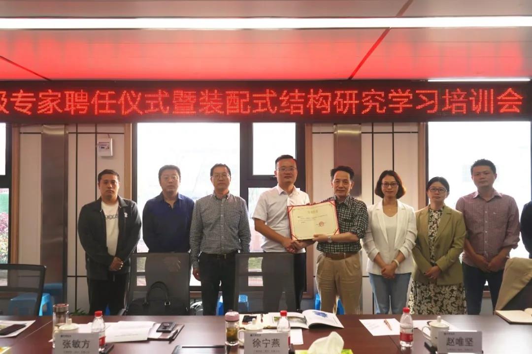 今年上半年通過對接各方資源,成功鎖定趙唯堅教授擔任高級顧問,承擔有關裝配式混凝土結構技術業務指導工作。為充分發揮高級專家的示范引領作用,進一步促進公司裝配式結構專業發展,10月13日下午,公司聯合中建科技在建筑工業化PC構件項目現場舉行高級專家聘任儀式暨裝配式結構研究學習培訓會。浙江大學教授、博士生導師趙唯堅及雙方有關領導、工程管理人員近30人參加會議。