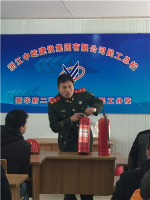 王參謀在講課中從消防在項目施工現場的重要性為出發點,給我們詳細介紹了平常工作中需要注意的幾個事項。如滅火器的使用方法和鑒別滅火器是否能正常使用的幾個要素;消防水帶、水槍的具體使用步驟;工程施工、生活現場電線不能私接亂搭、禁止大功率電器的使用、注意通風等。