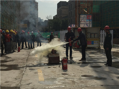 講座結束后,各參與單位(部門)到施工現場觀看了滅火器、消防水槍的具體滅火操作演練,王參謀在講解了正確的操作方法后,邀請了施工現場的工作人員作了實時操作,演練取得了圓滿成功。