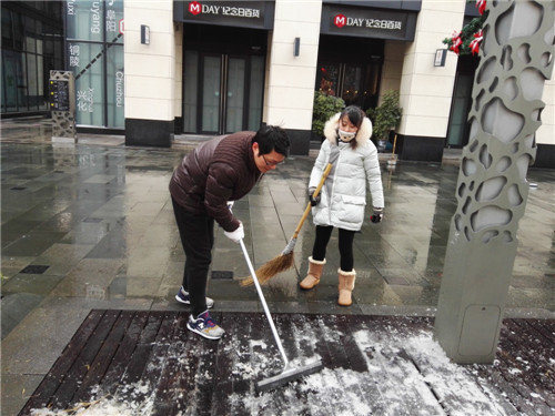 從1月20日開始至今,整個愛山廣場的領導和員工們就像個一直不停旋轉的陀螺沒有停歇過。 終于在大家的努力下,愛山廣場頂住了風雪、頂住了冰凍,頂住了寒潮。看到自己辛苦勞動的成果,大家們不由得露出了欣慰的笑容。