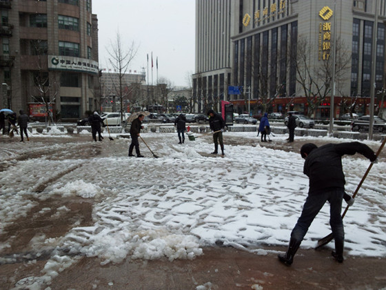 年前下了兩場大雪,愛山廣場路面積雪給通行帶來了極大的不便,也影響了周邊店鋪正常營業。公司團委兩次組織青年團員掃雪鏟冰。大家冒著風雪,不顧嚴寒迅速開動,趕在路面凍結以前將積雪清除,現場呈現出一派熱火朝天的景象。在幾個小時的共同努力下,愛山廣場的一些主要路面得到了清掃,保障了車輛順利通行,方便了行人安全出行,同時也為商業街區的正常營業提供了良好的環境。